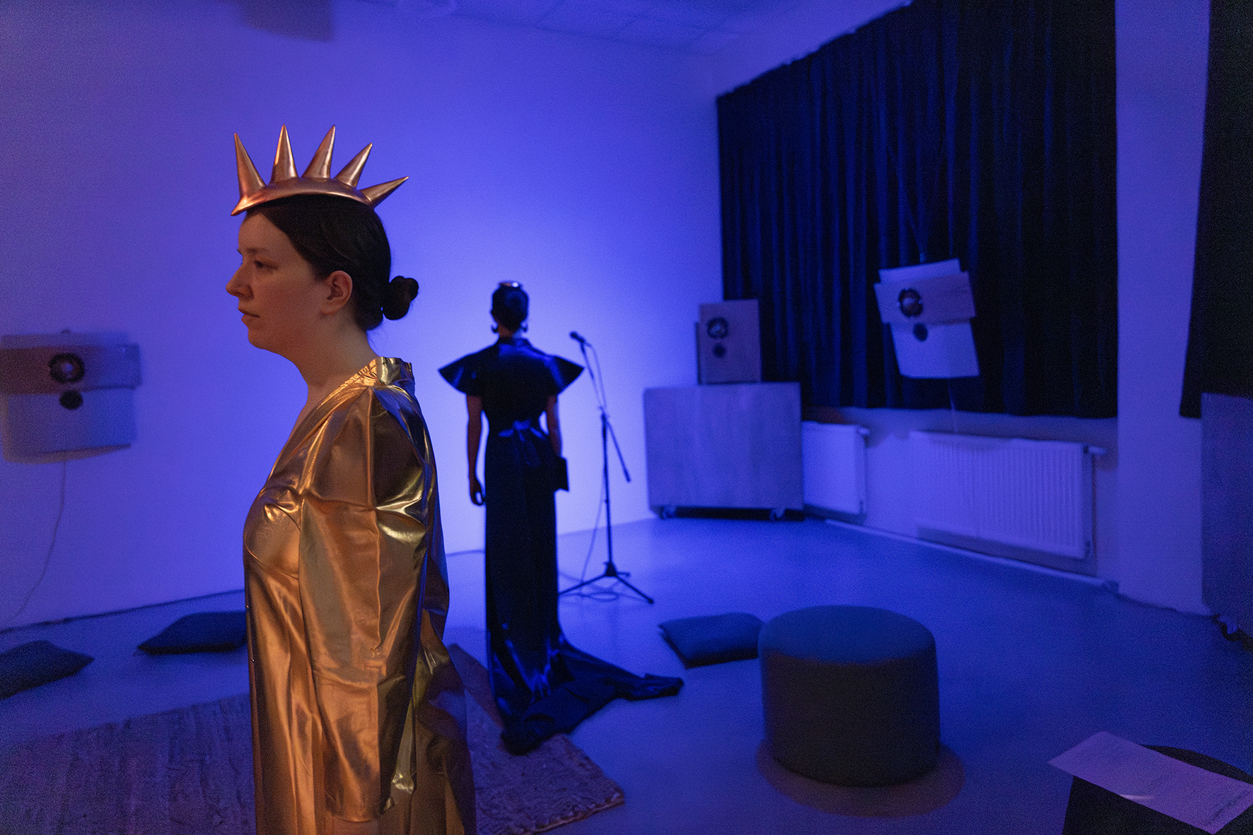 The piece was performed live in Glasgow, using art-deco inspired celestial costumes. The work was later presented at Centro de Cultura Digital (Mexico City, MX 2024), the Swedish Museum of Performing Arts as part of Elektronmusikstudion's 60th Anniversary Festival (Stockholm, SE 2024) and at Lydgalleriet (Bergen, NO 2025).