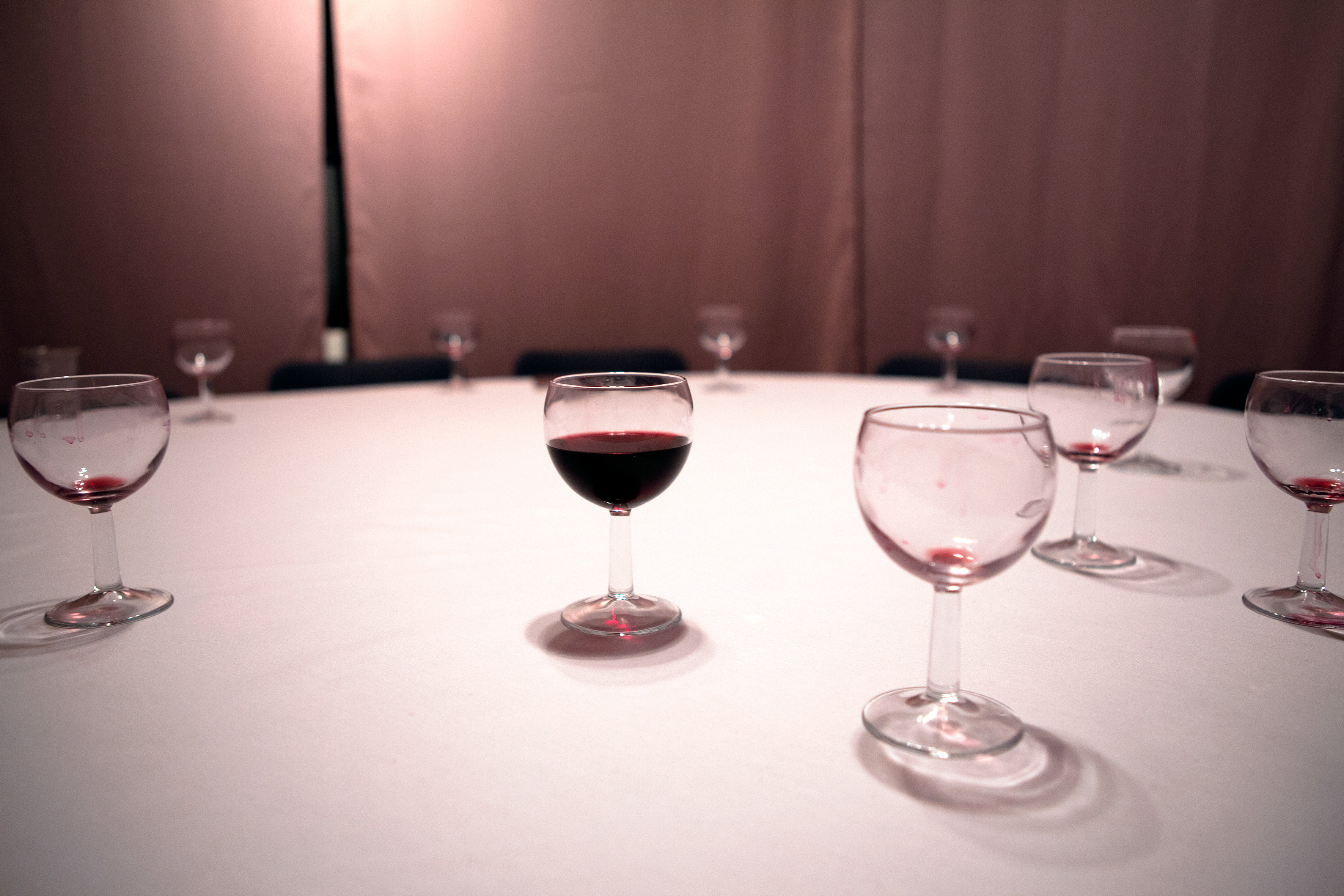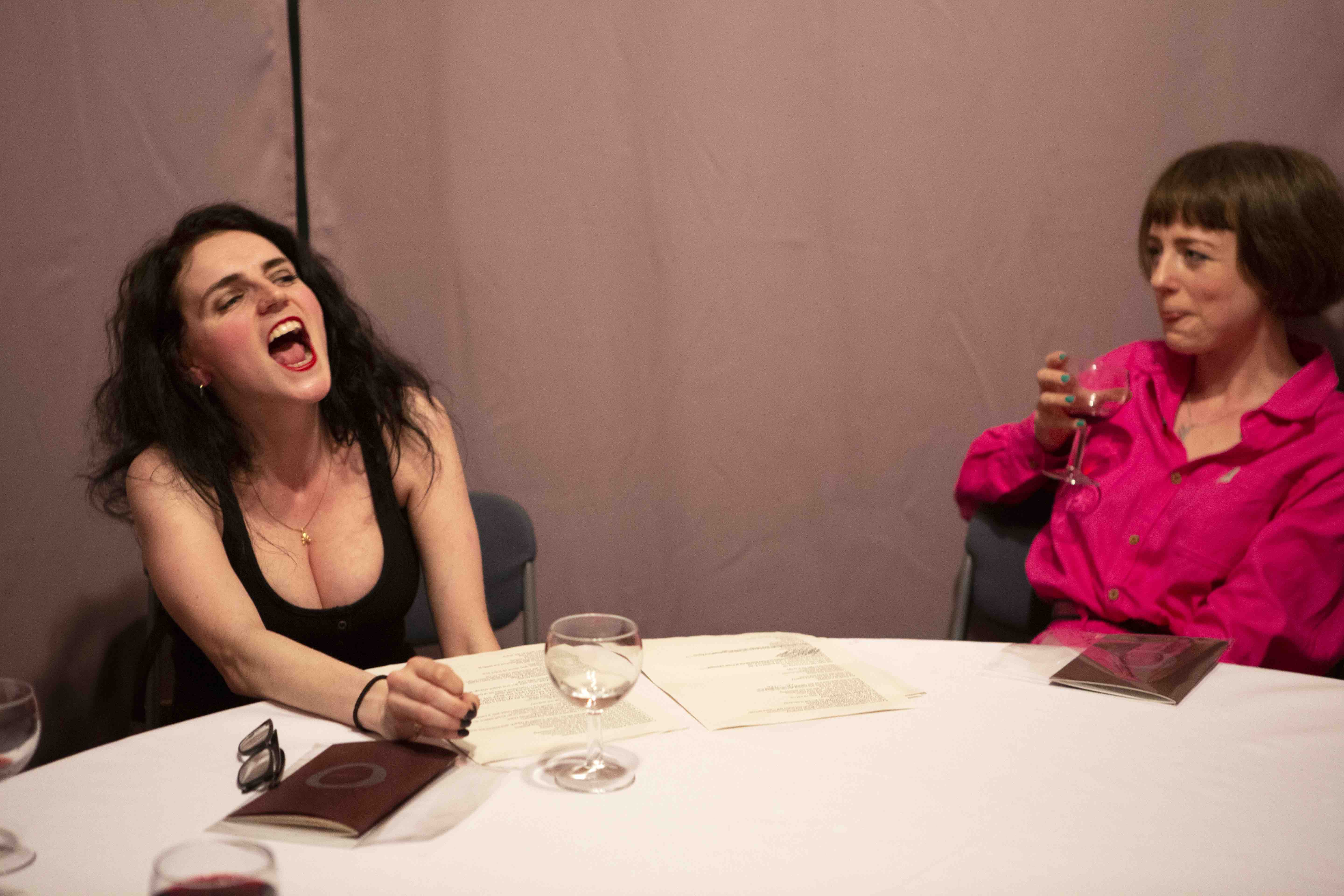 An intimate evening of feminist cannibalism hosted around a circular dining table, premièred on the 17th of April 2019. Eight women, alongside performance artist Liv Fontaine and myself as host, are invited to sit together, drink red wine and consume female authored art. In keeping with the decor, guests wear burgundy, pink or mauve toned attire. The event consists of four courses: a starter of my written barf (published by PSS), followed by a screening of Carolee Schneemann’s Fuses and a digitalised version of Hot Readings by Erica Scourti. For dessert, a newly commissioned live performance I’m the People Pleaser, by Liv Fontaine, is served.