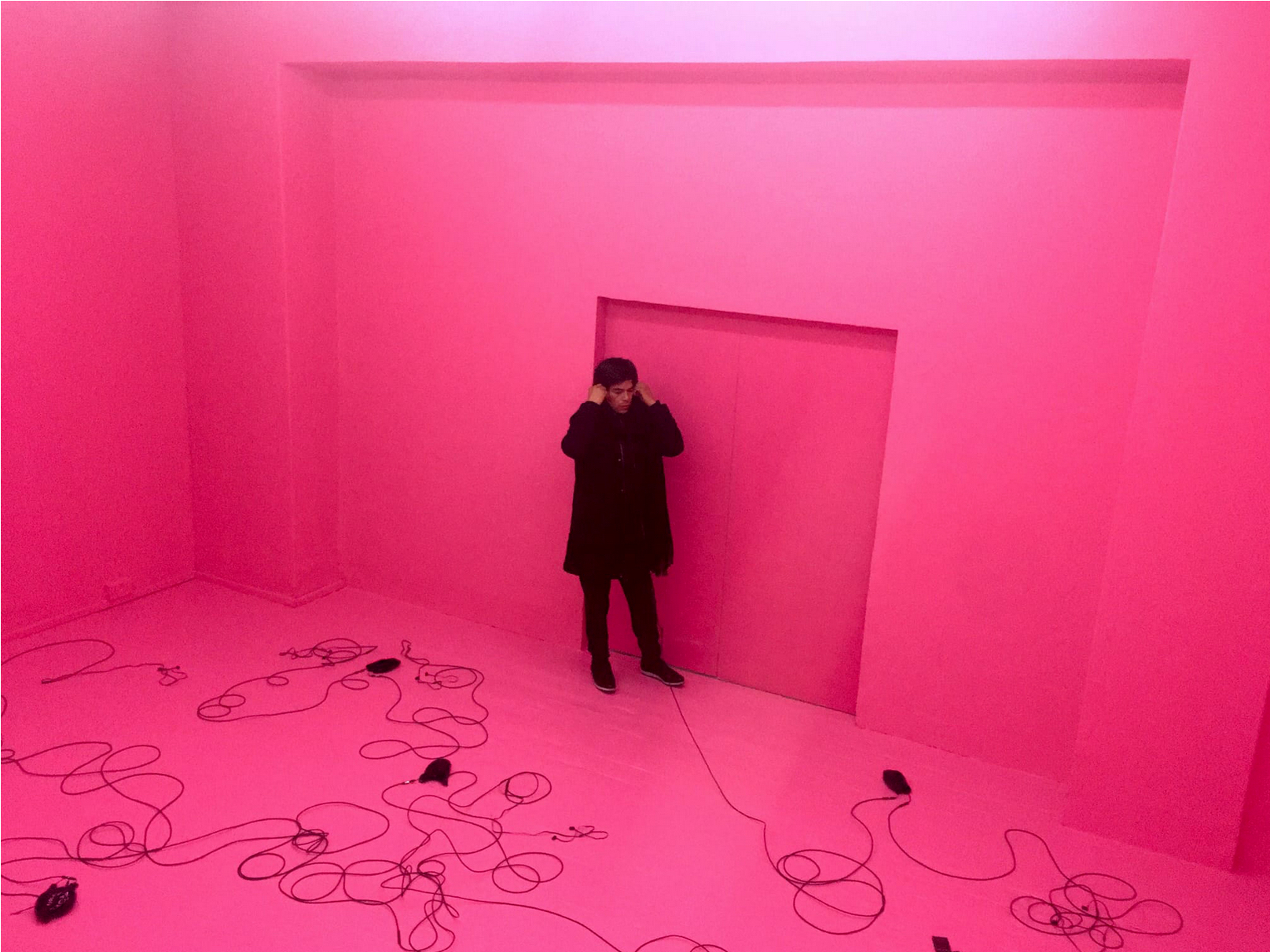 Immersive pink installation with six silicon sculptures with internal audio players | 2018